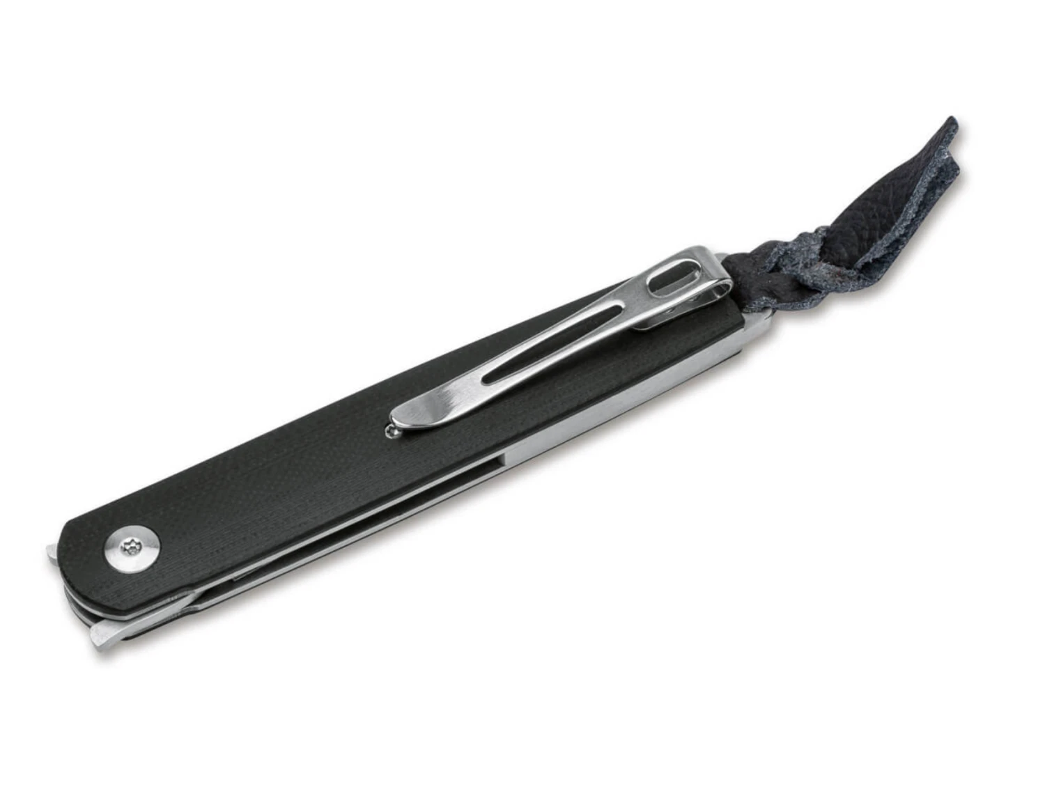 The slender build is based on stainless liners encasing the liner lock. Thanks to the large lanyard hole and clip (tip-up/r), the lightweight knife is easy to carry. The VG-10 blade has a vertical satin finish that matches the G10 handle scales perfectly.