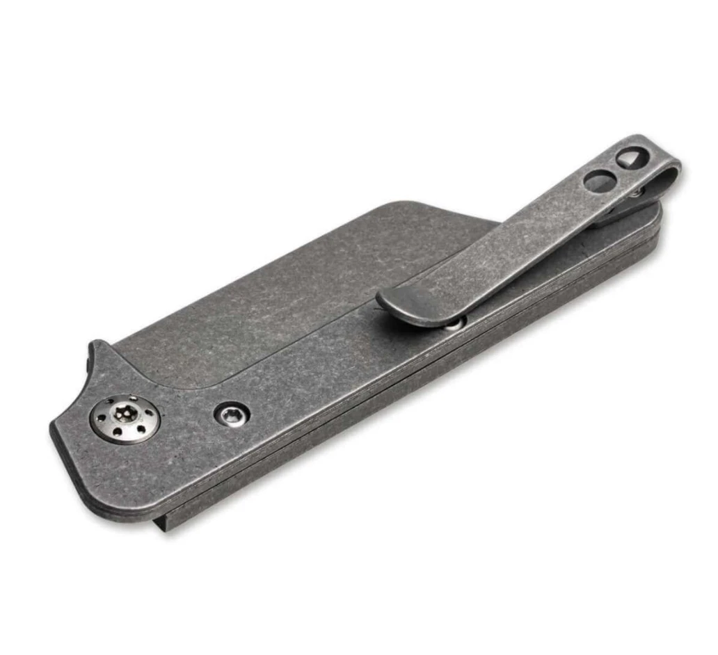 The outstanding Boker Plus Fragment convinces as a lightweight EDC or backup knife with an extremely reduced design. The handy pocket knife completely dispenses with a front handle scales and relies instead on a minimalist bar that connects the blade axle screw with the rear scales. The hollow ground modified sheepfoot blade is crafted from cobalt alloyed 9Cr13CoMoV and, like the entire full-steel tang construction, is finished in a dark stonewash finish. The operating safety of the modern slipjoint pocket knife is further enhanced by a 90 degree arrestor when opening and closing the blade and a finger guard. With a lanyard hole and practical deep-carry clip (tip-up/r).